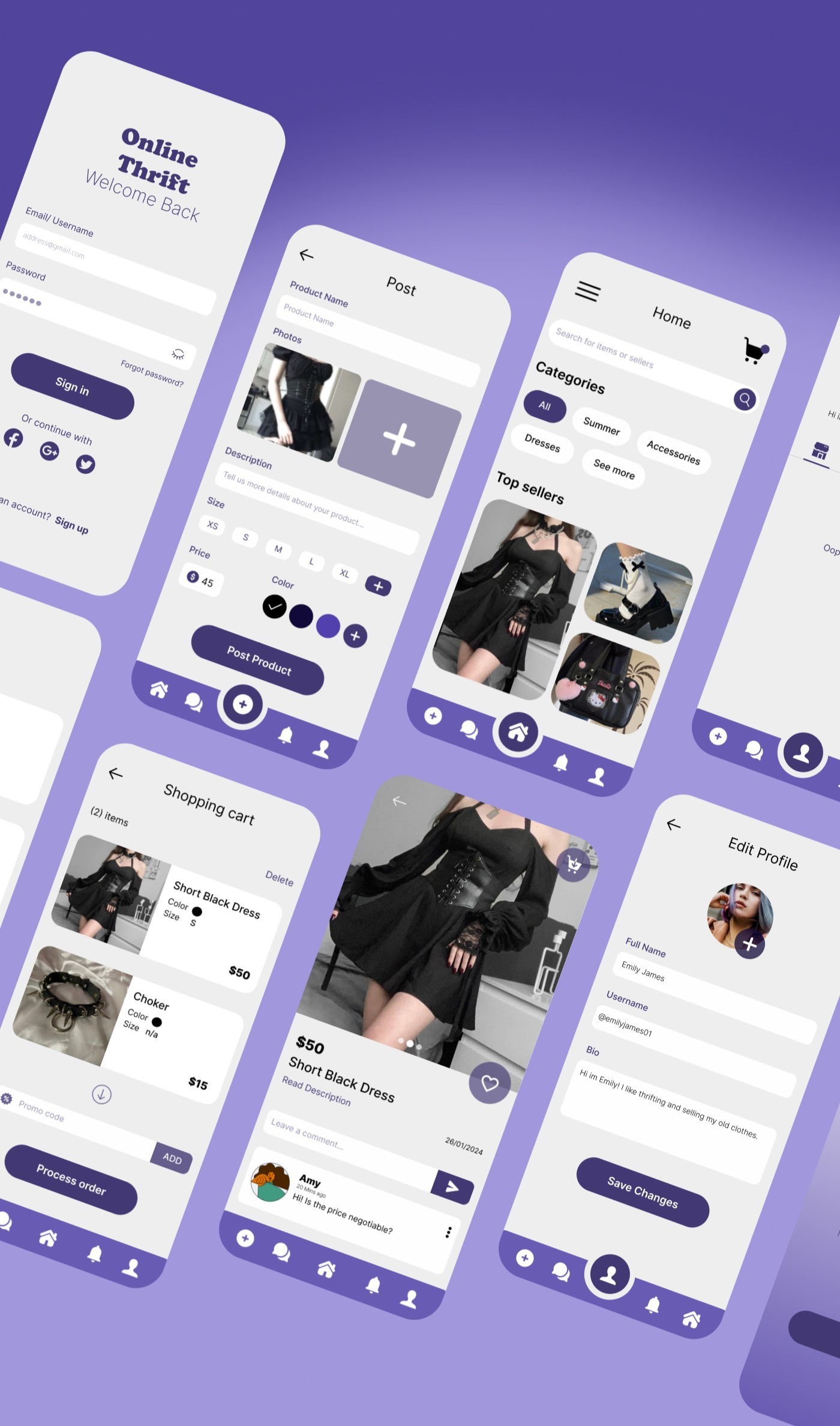 Online Thrift is a sustainable fashion app that makes buying and selling second-hand clothing simple, enjoyable, and secure. The goal was to create a seamless experience that encourages users to shop consciously while transforming their closets sustainably.